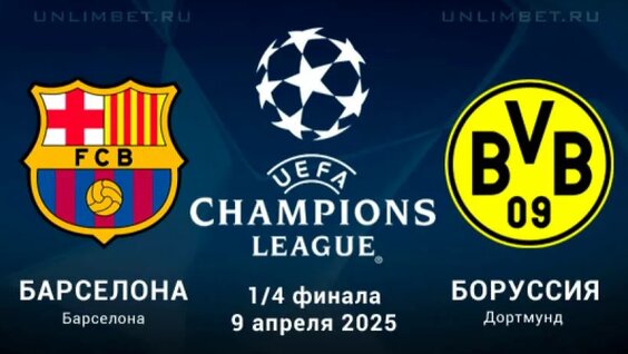 - Коэффициенты: «Барселона» -290; Ничья +440; «Боруссия» Дортмунд +650