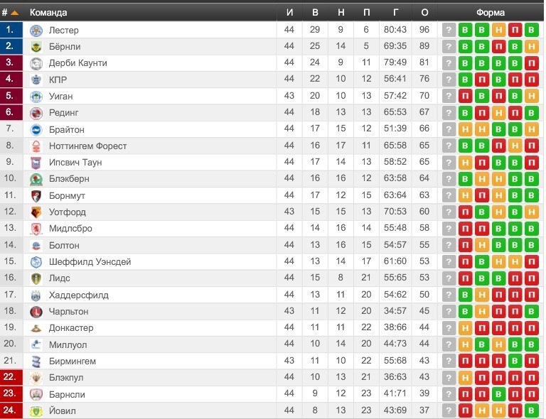 | 8 | Мидлсбро | 42 | 10 | 60 |
