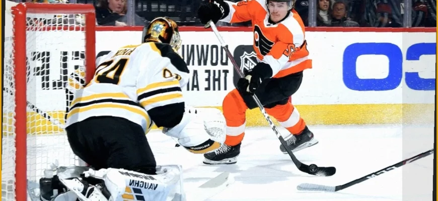 В рамках очередного матча регулярного чемпионата Национальной хоккейной лиги (НХЛ) команда «Филадельфия Флайерз» на своей домашней арене встретилась с «Бостон Брюинз». После напряженного основного времени, завершившегося вничью (1:1), «Филадельфия» сумела одержать победу в овертайме со счетом 2:1, обеспечив себе важные очки в турнирной таблице.