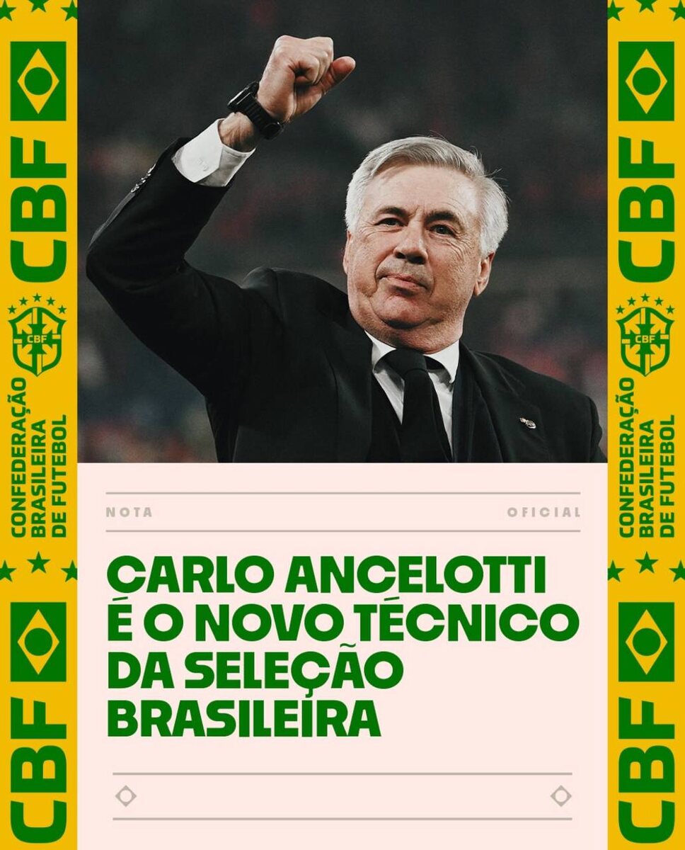 - Назначение Анчелотти в сборную Бразилии: Подробнее о выборе сборной Бразилии назначить Карло Анчелотти, что, как кажется, «кричит об отчаянии» национальной команды всего за год до Чемпионата мира.