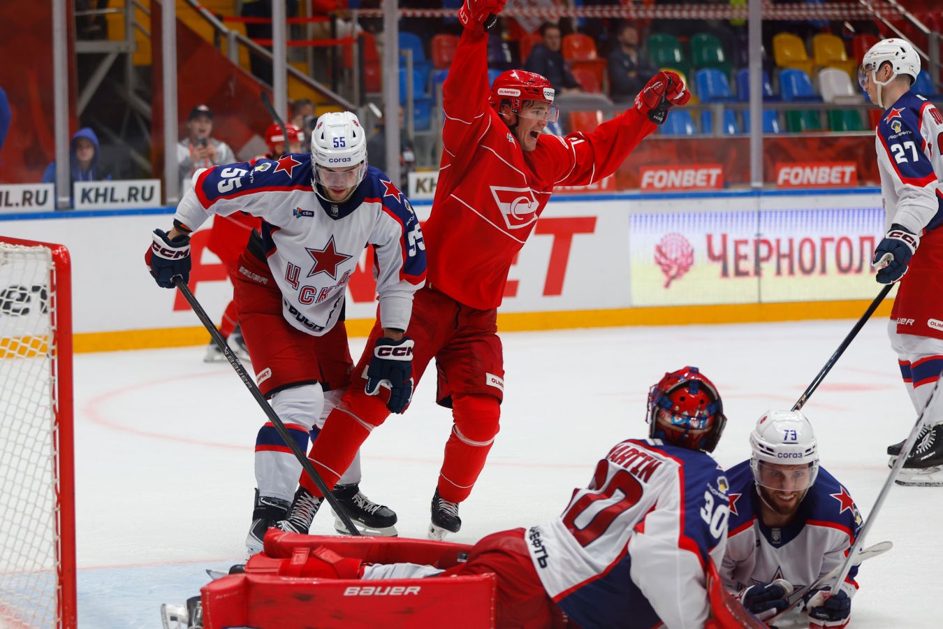 Московское дерби между «Спартаком» и ЦСКА завершилось победой «красно-белых» со счётом 3:2. Все три шайбы «Спартак» забросил, играя в большинстве, а победный гол, принесший три очка, Адам Ружичка оформил всего за сорок секунд до конца третьего периода. В составе армейцев отличился Максим Соркин, достигший отметки в сто результативных передач в КХЛ.