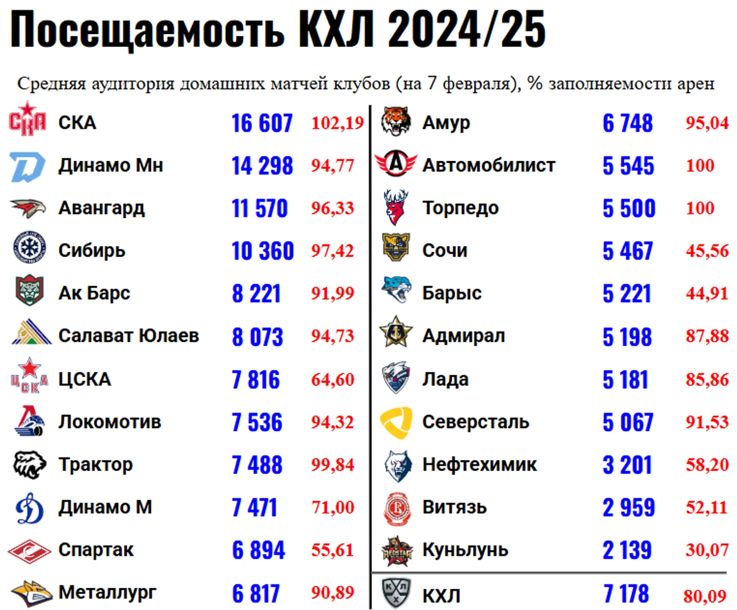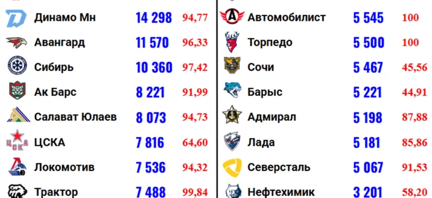 Ежегодный рейтинг клубов КХЛ