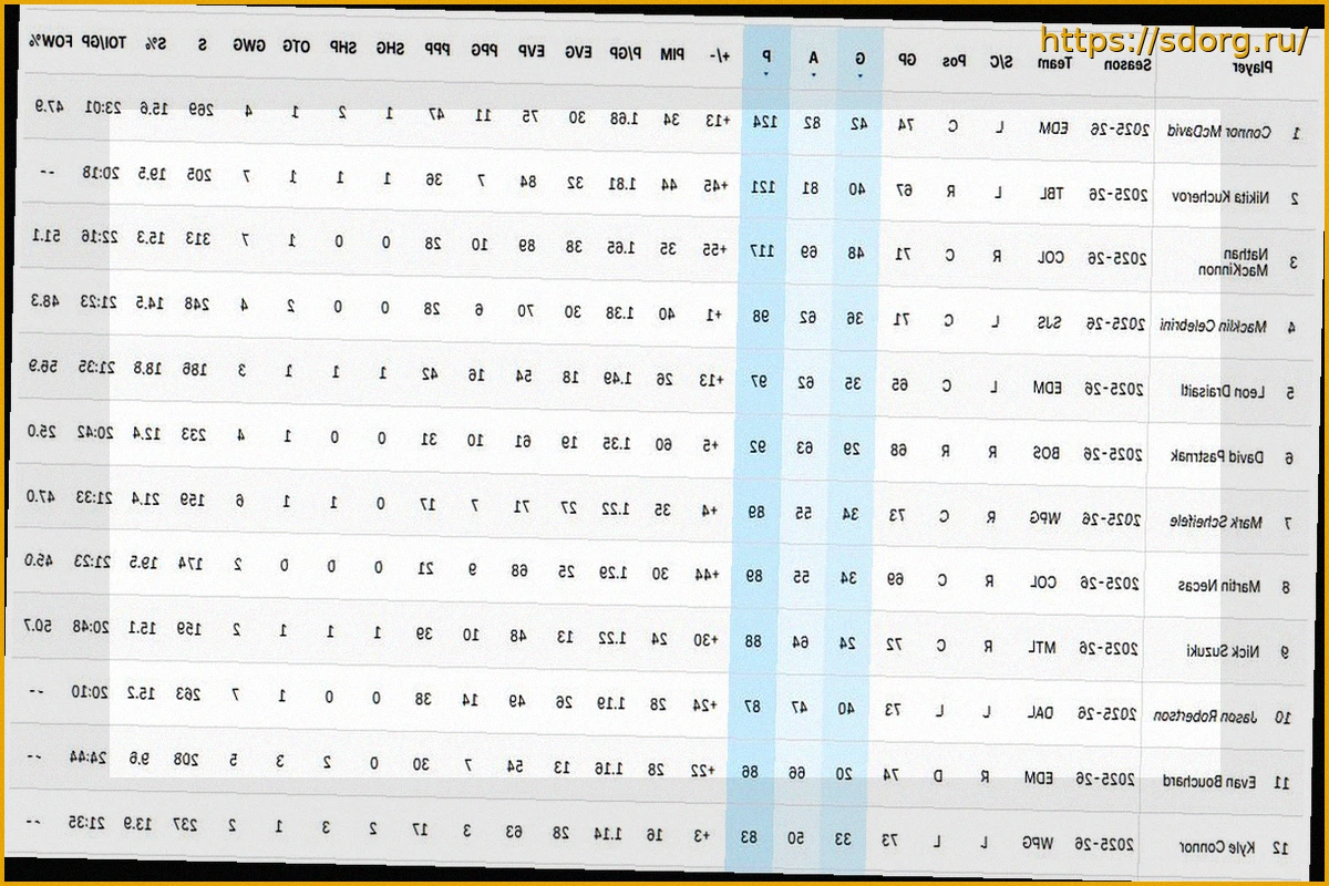 По состоянию на 30 марта 2026 года, капитан «Эдмонтон Ойлерз» Коннор Макдэвид уверенно возглавляет список лучших бомбардиров текущего регулярного чемпионата Национальной хоккейной лиги сезона 2025/26. Ближайшим преследователем лидера является российский форвард «Тампа-Бэй Лайтнинг» Никита Кучеров, занимающий вторую строчку.