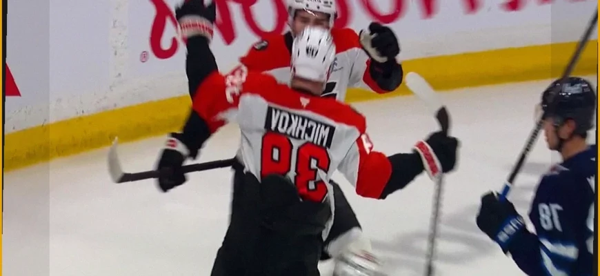 Российский форвард клуба НХЛ «Филадельфия», Матвей Мичков, отметился заброшенной шайбой в гостевой игре против команды «Виннипег». Матч, в рамках регулярного чемпионата НХЛ, завершился крупной победой «Филадельфии» со счетом 7:1. Этот гол стал для Мичкова 18-м в текущем сезоне.