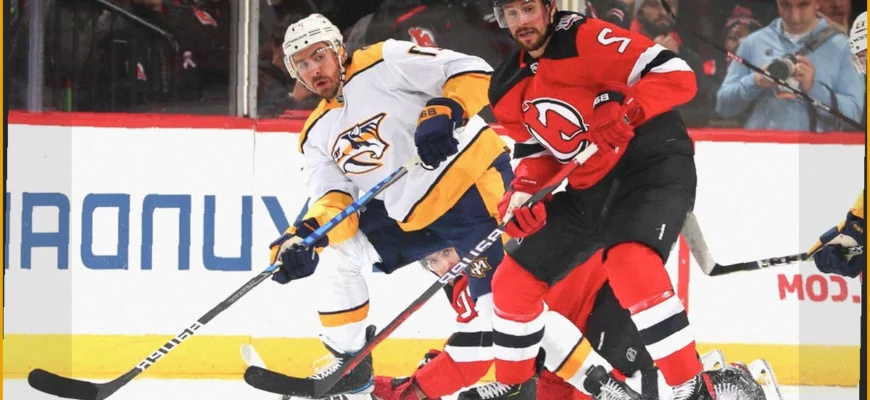 Хоккейный клуб «Нэшвилл Предаторз» потерпел домашнее поражение от «Нью-Джерси Девилз» со счетом 2:4. Эта встреча прошла в рамках регулярного чемпионата Национальной хоккейной лиги.