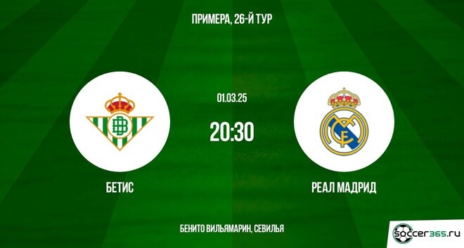 - Коэффициенты: «Реал Бетис» +320; Ничья +300; «Реал Мадрид» -135