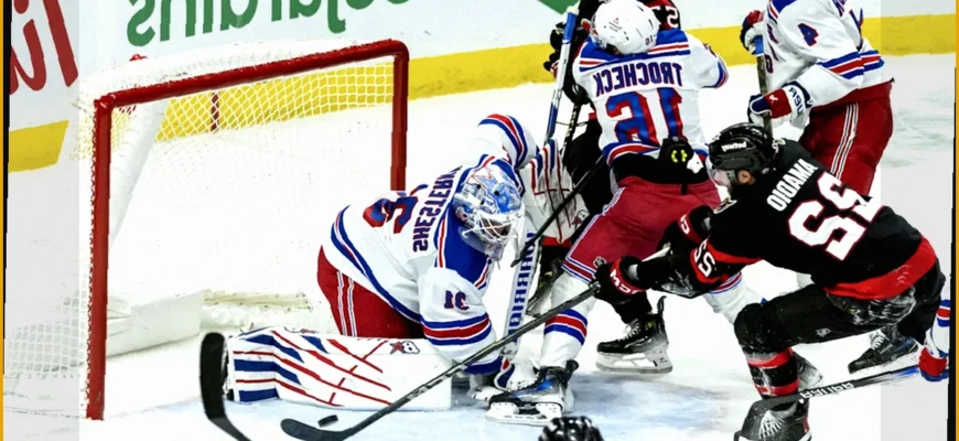 Российский голкипер хоккейного клуба «Нью-Йорк Рейнджерс» Игорь Шестеркин был отмечен как третья звезда домашнего поединка регулярного чемпионата Национальной хоккейной лиги против «Оттавы Сенаторз».