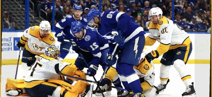 В домашнем матче регулярного чемпионата Национальной хоккейной лиги (НХЛ) команда «Тампа-Бэй Лайтнинг» одержала победу над клубом «Нэшвилл Предаторз» со счётом 3:2.