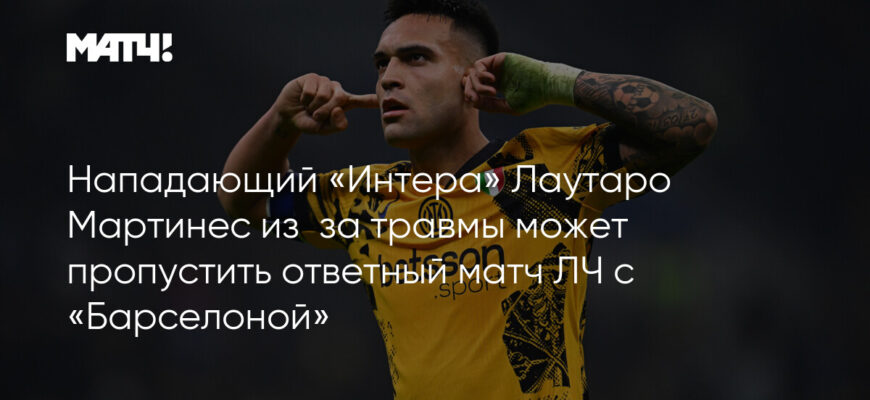 Нападающий «Интера» Лаутаро Мартинес, скорее всего, не сможет принять участие в ответном полуфинальном матче Лиги чемпионов УЕФА против «Барселоны». Игра состоится во вторник в Милане после того, как первый поединок в Барселоне завершился вничью 3:3. Итальянский клуб пока сохраняет надежду и будет следить за состоянием своего капитана в ближайшие дни, чтобы понять, сможет ли он вообще попасть в заявку. Аргентинский форвард получил мышечную травму, из-за которой главный тренер «Интера» Симоне Индзаги был вынужден заменить его в перерыве первого матча.